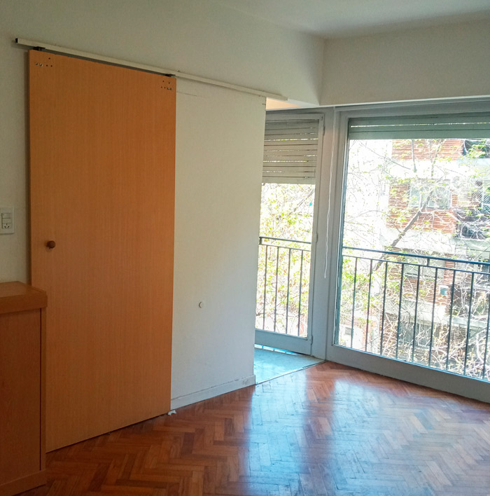 Muy luminoso, con ventanales hasta el piso en Living-Comedor y Dormitorio (persianas de madera)